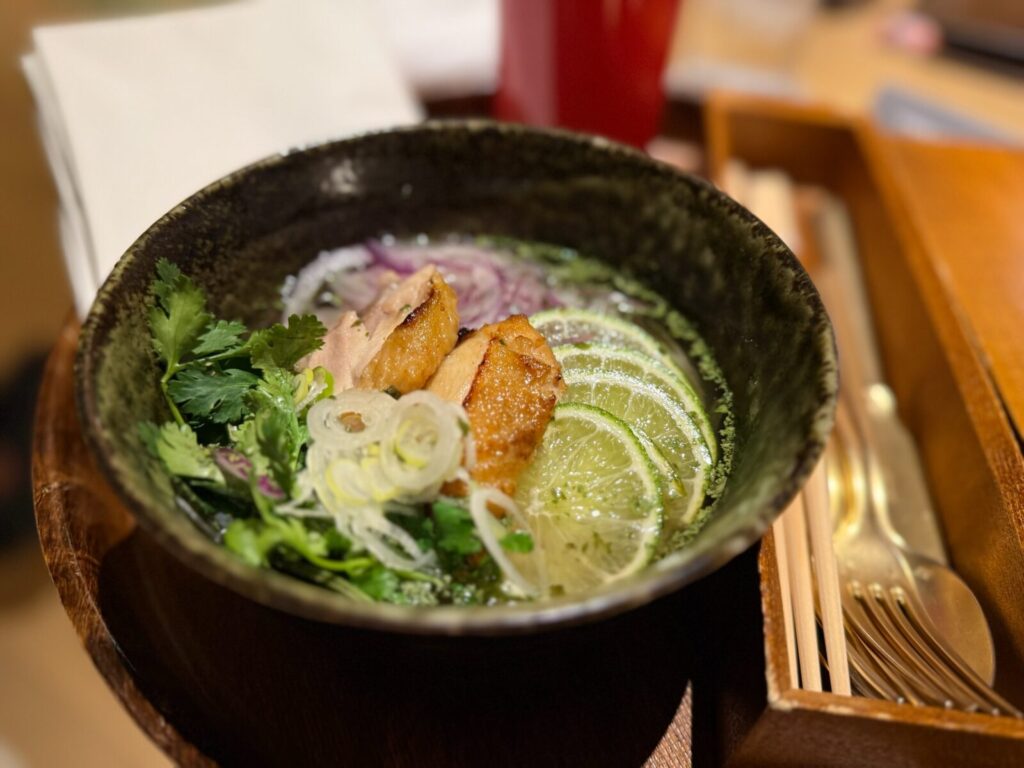 夜はルームサービスを利用しました。オールデイダイニングメニューからフォーをチョイス。オーダーは部屋に設置されているタブレットからできます。電話をかけなくて良いのは便利ですね。