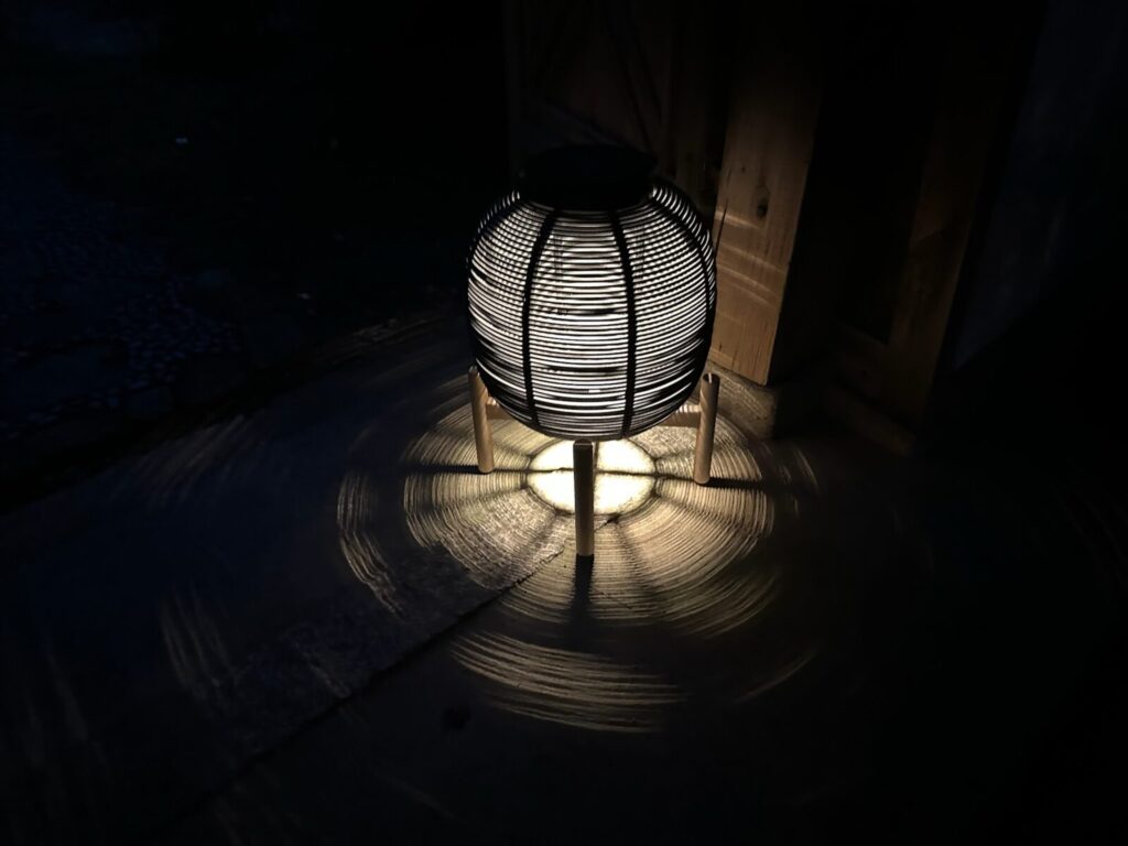 日が暮れ、ライトアップされた建物も素敵でした。足元ランプは影まで芸術的でした。