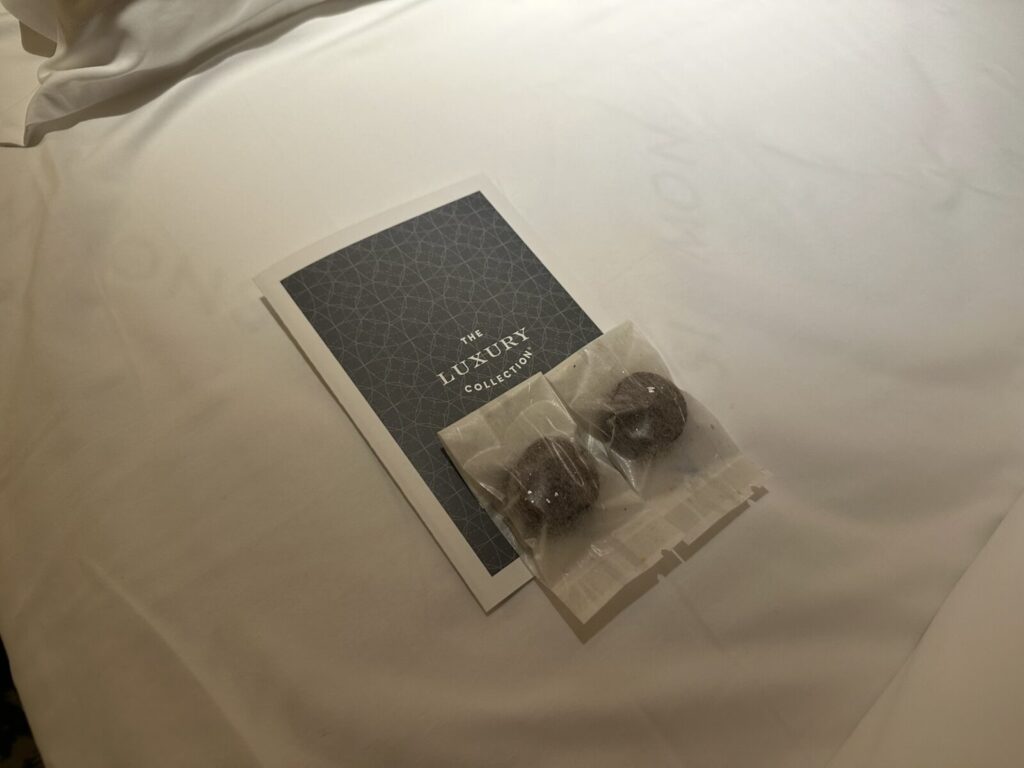 ちなみにフリーフローに行っている間にベッドメイキングをお願いしていました。布団がピシッと綺麗な状態に戻っていて。使用したタオルなども回収されていました。一番嬉しかったのが、ベッドに置いてくれていたクッキー。夜に食べるのは少々ギルティーなので次の日に美味しくいただきました。