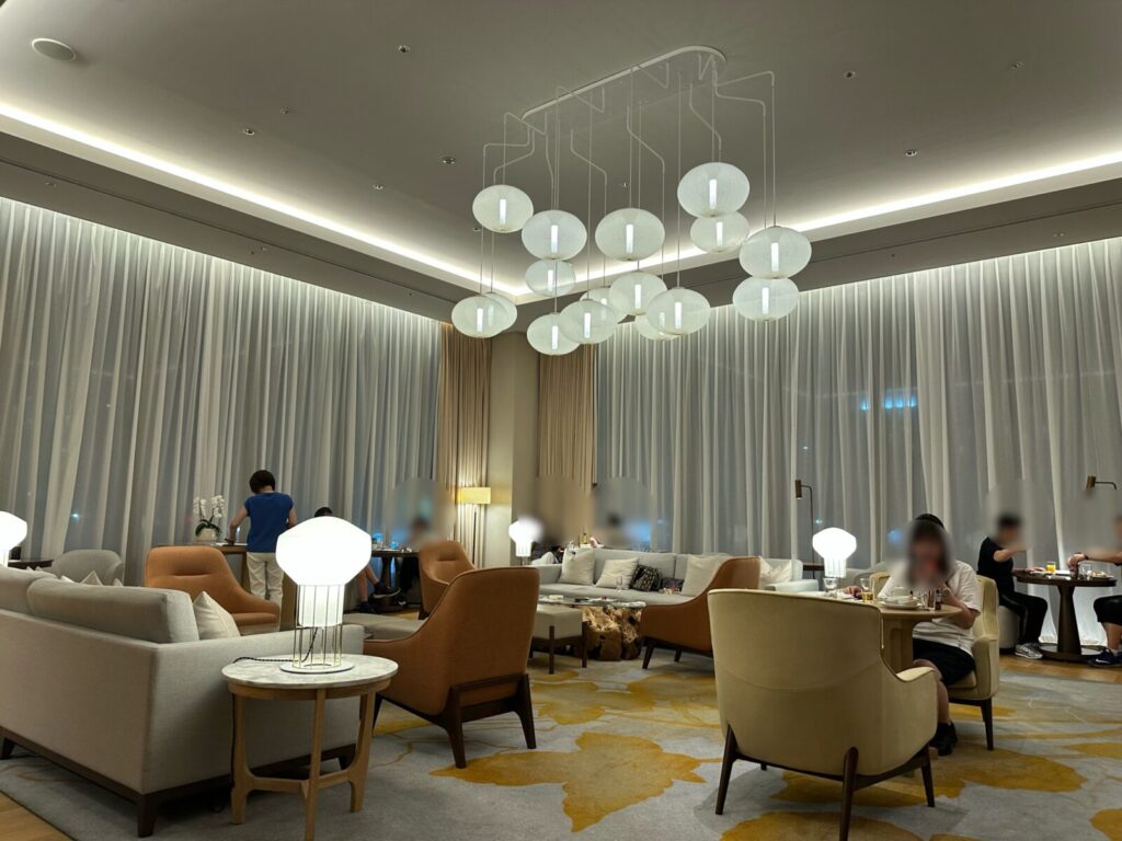 こちらのラウンジはマリオットボンヴォイのプラチナ以上のステータスを持っている方が利用できます。2階にあります。ロビー階からエレベーターで上がって奥の方にあります。